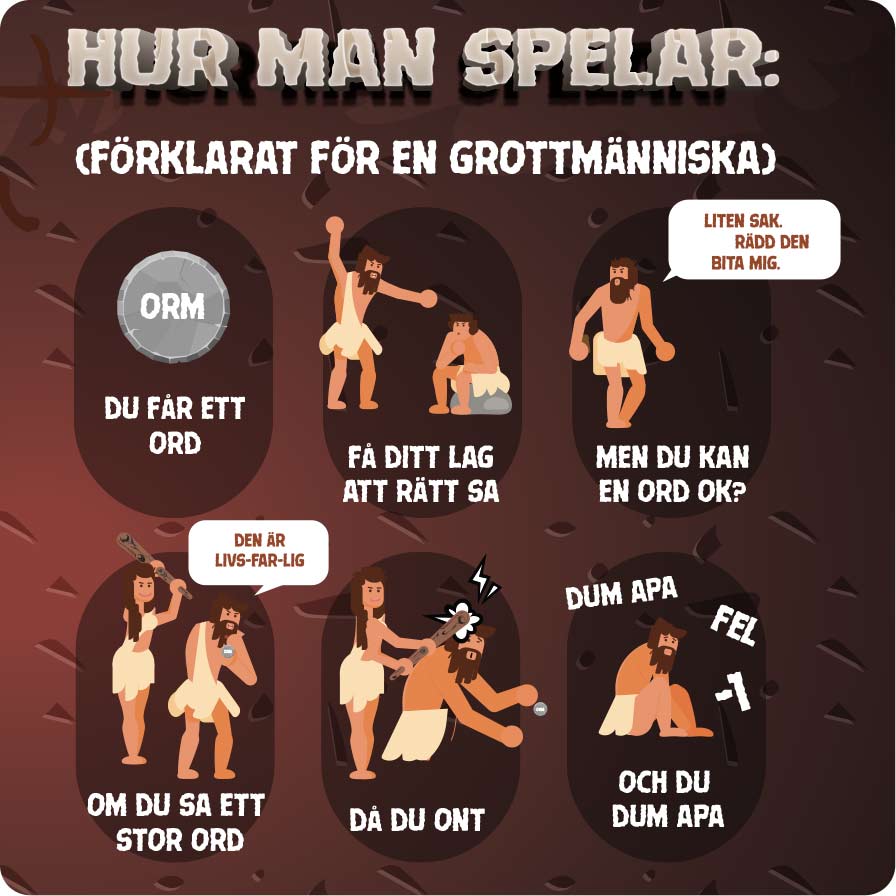 - Du får inte säga en del av ordet eller former av ordet (endast om en lagspelare har sagt det först)